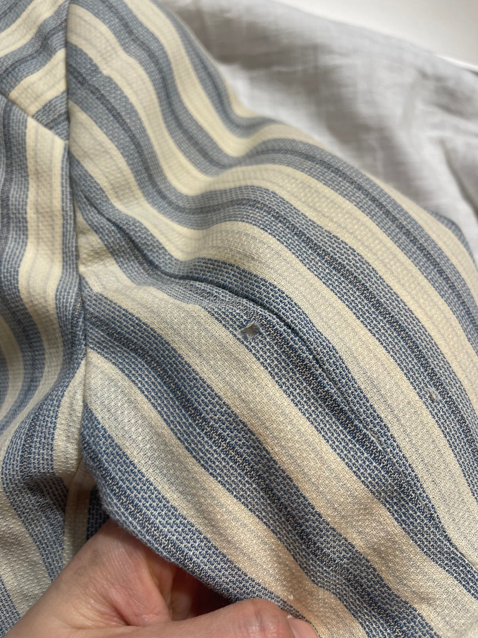 Condition: Has some staining on the front of the skirt and a few holes in the blazer shown.
