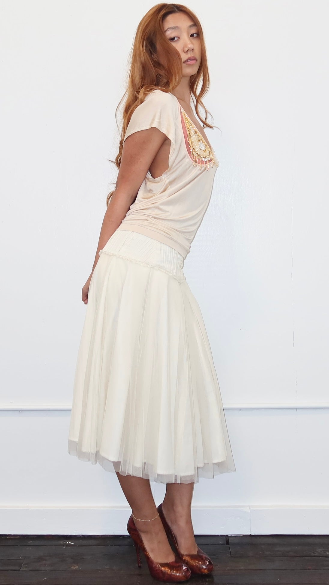 Gaetano Navarra white tulle skirt with beading and embroidery. Fits like an extra small/ small.