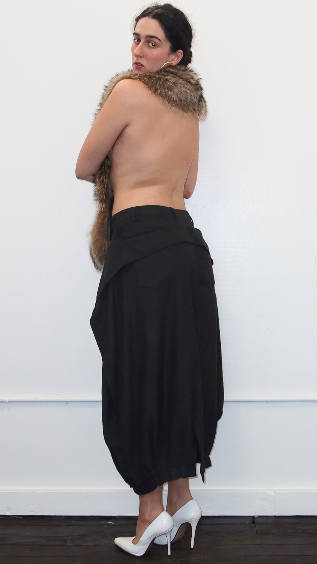 Gray Italian deconstructed skirt. Can be buttoned or unbuttoned at the center. Fits like a small/ medium.