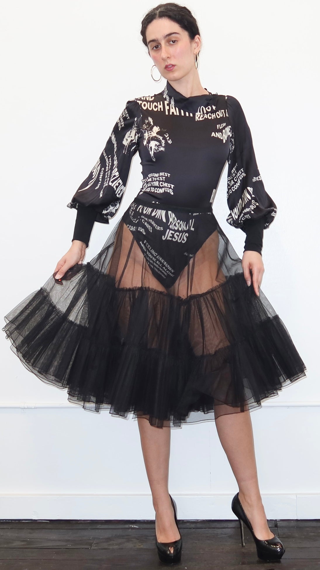Alessandro de Benedetti balloon sleeve button up top. Has a solid black stretchy back. Fits like a small/ medium.