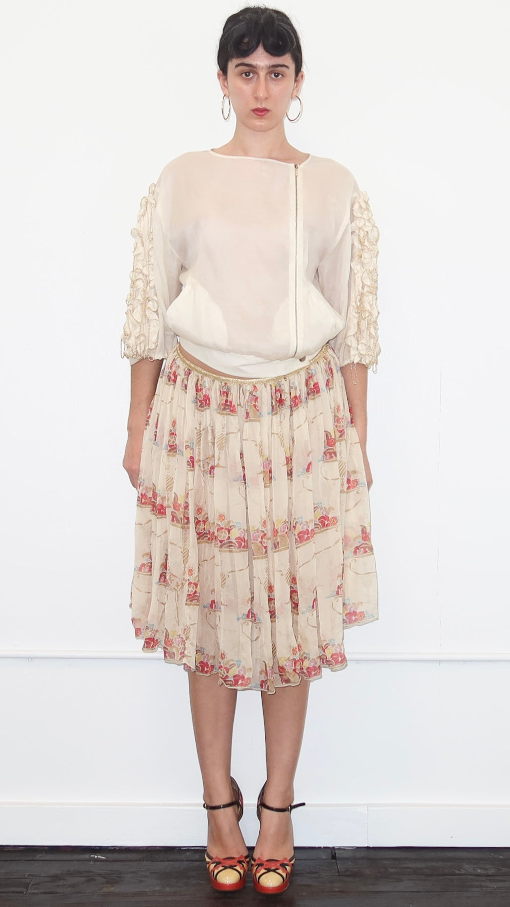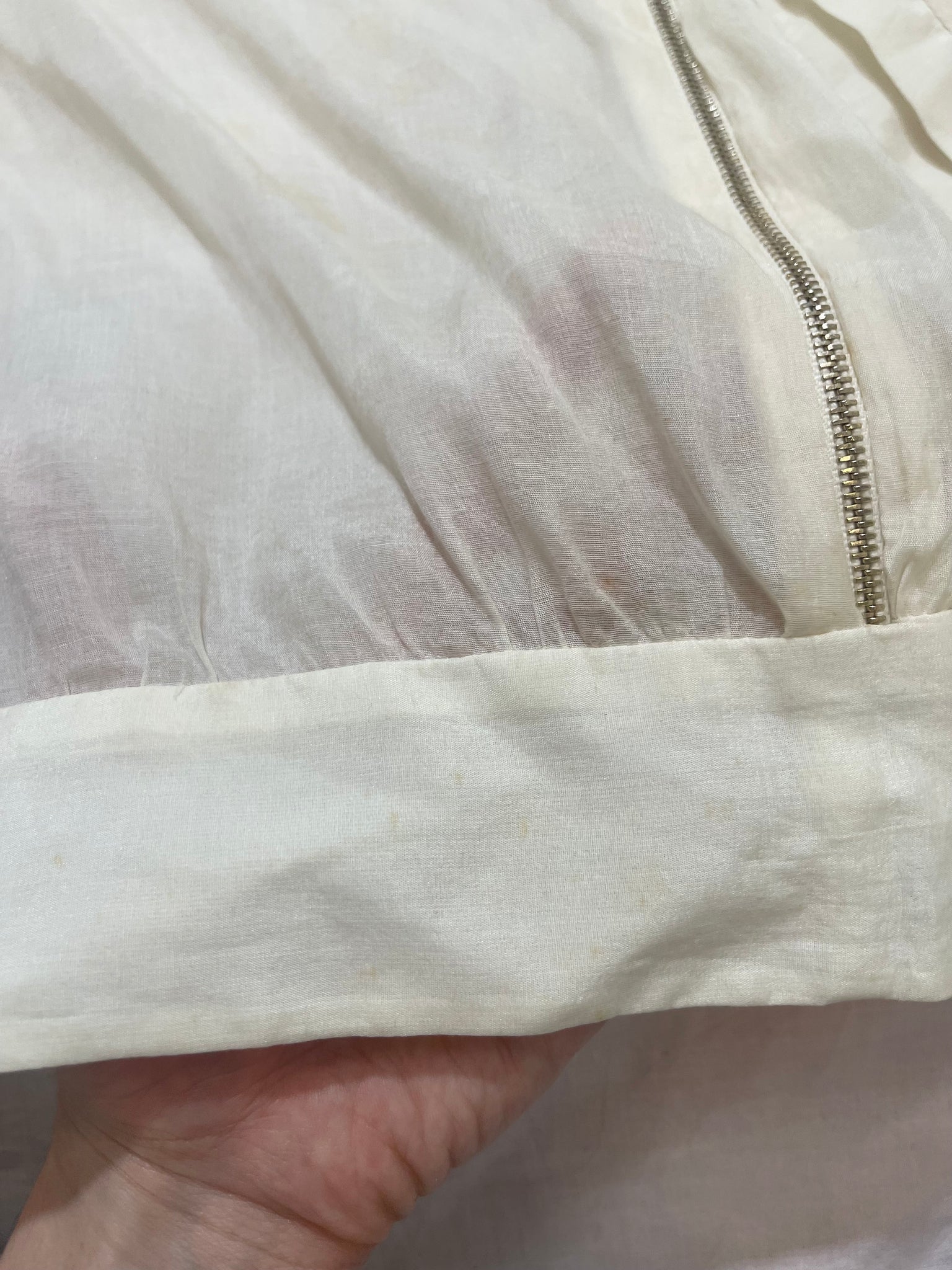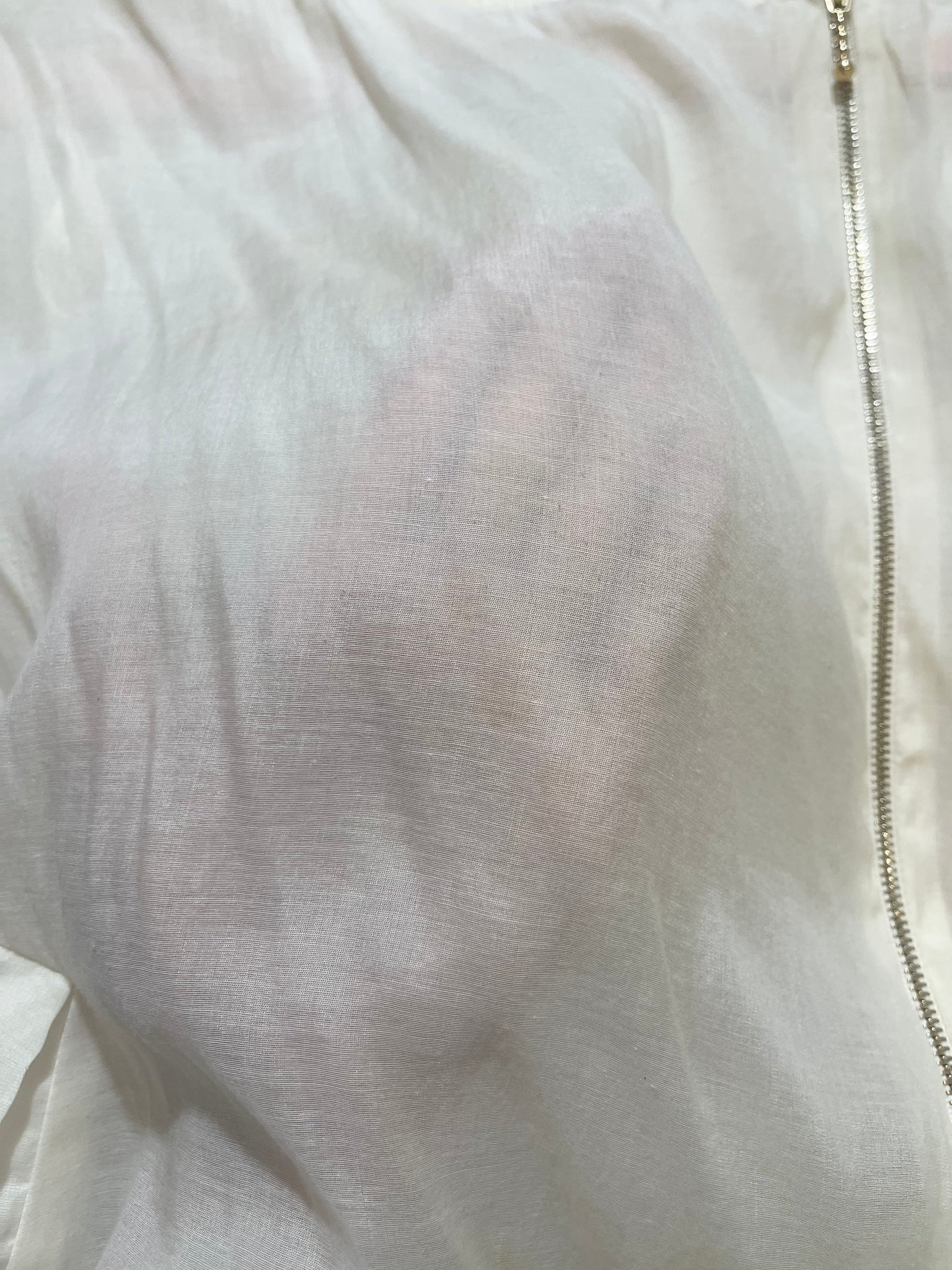 Stella McCartney cream top with billowy sleeves. Zips up the front and snaps at the waist. Fits like a small/ medium.