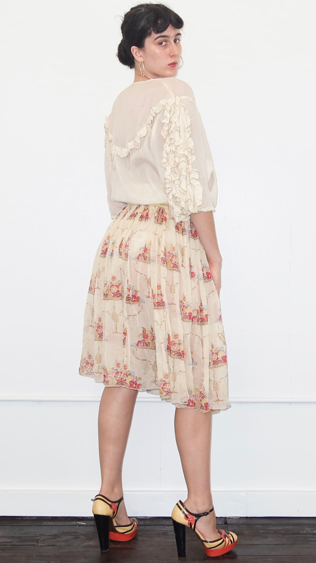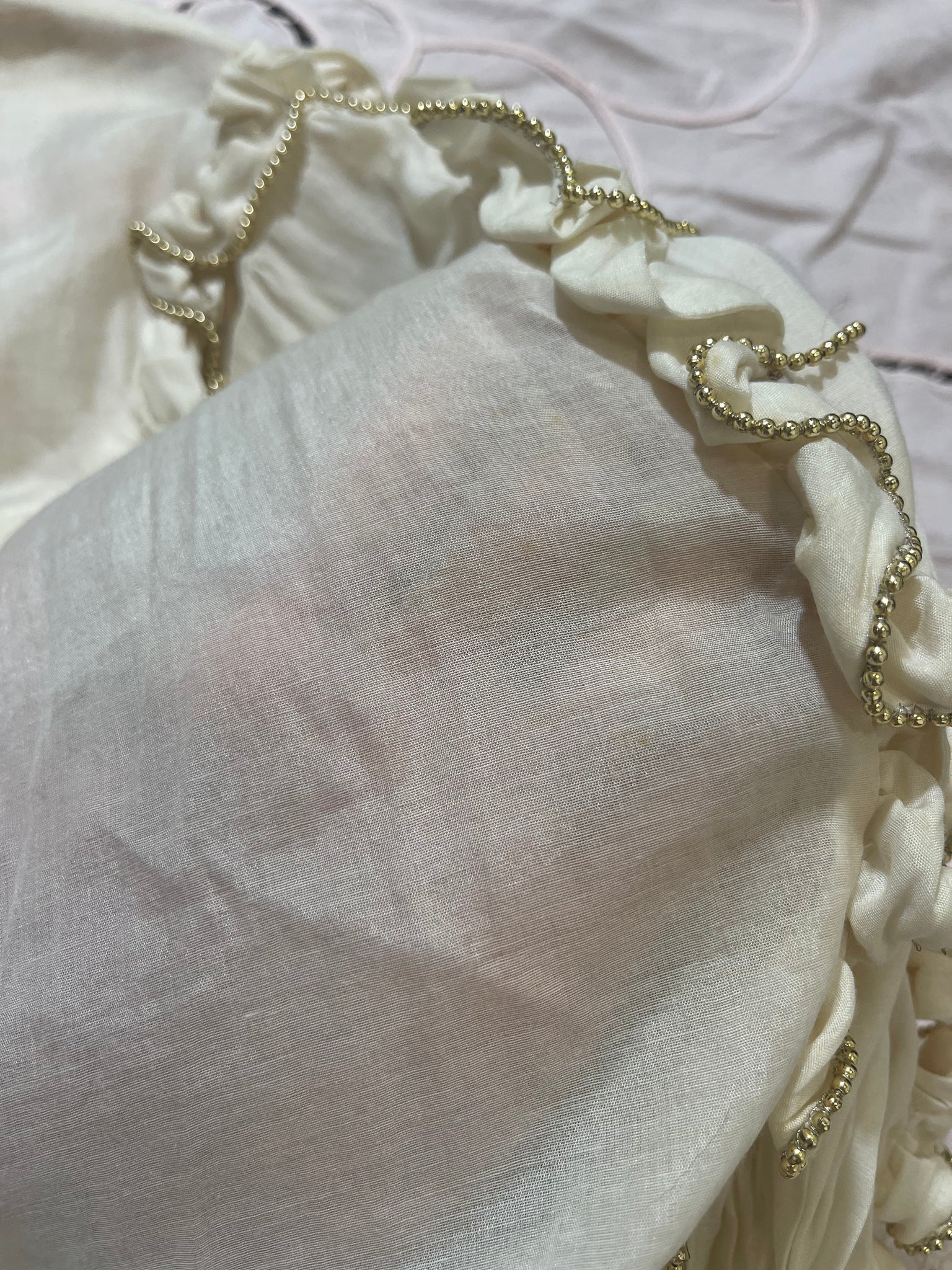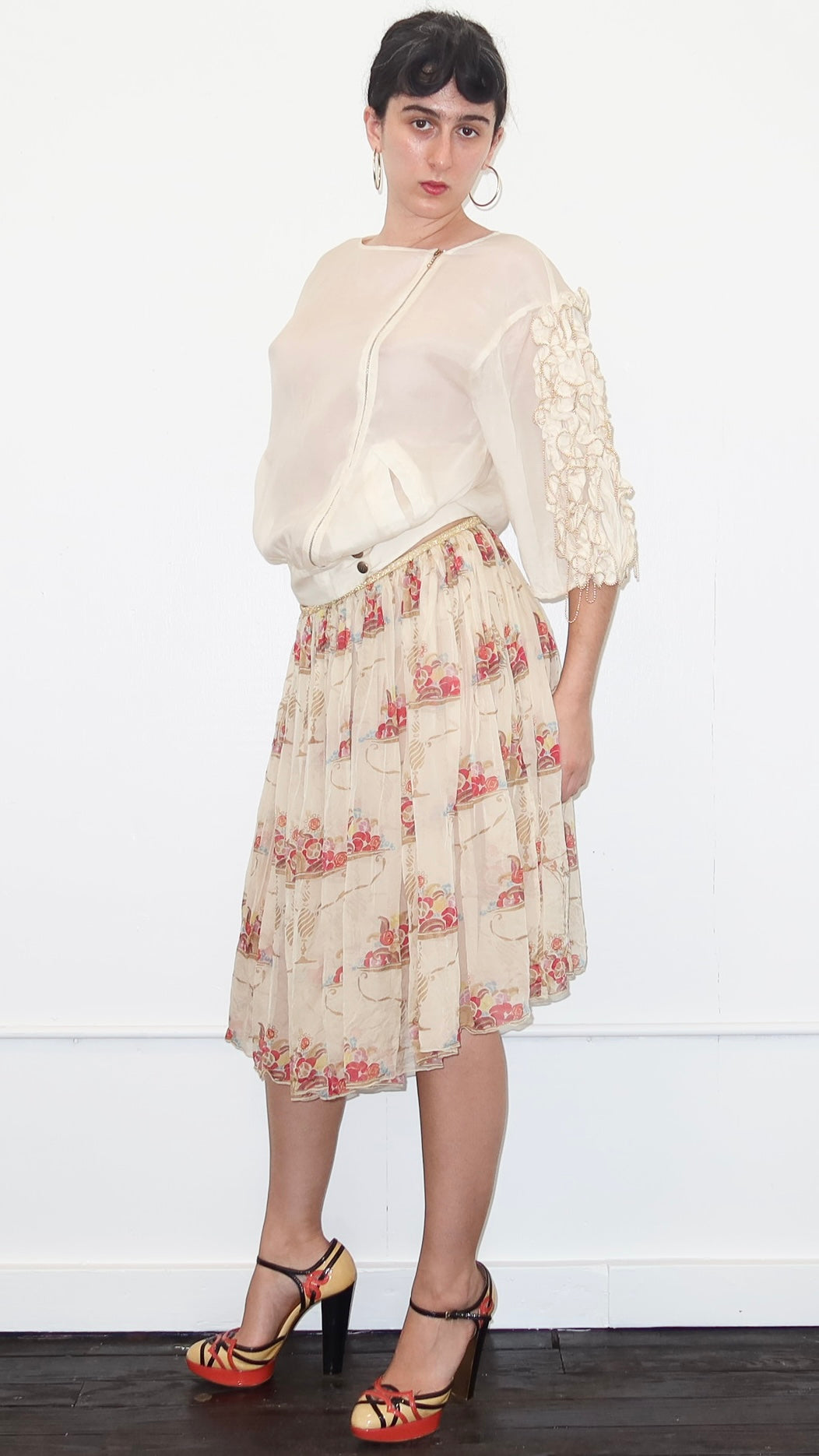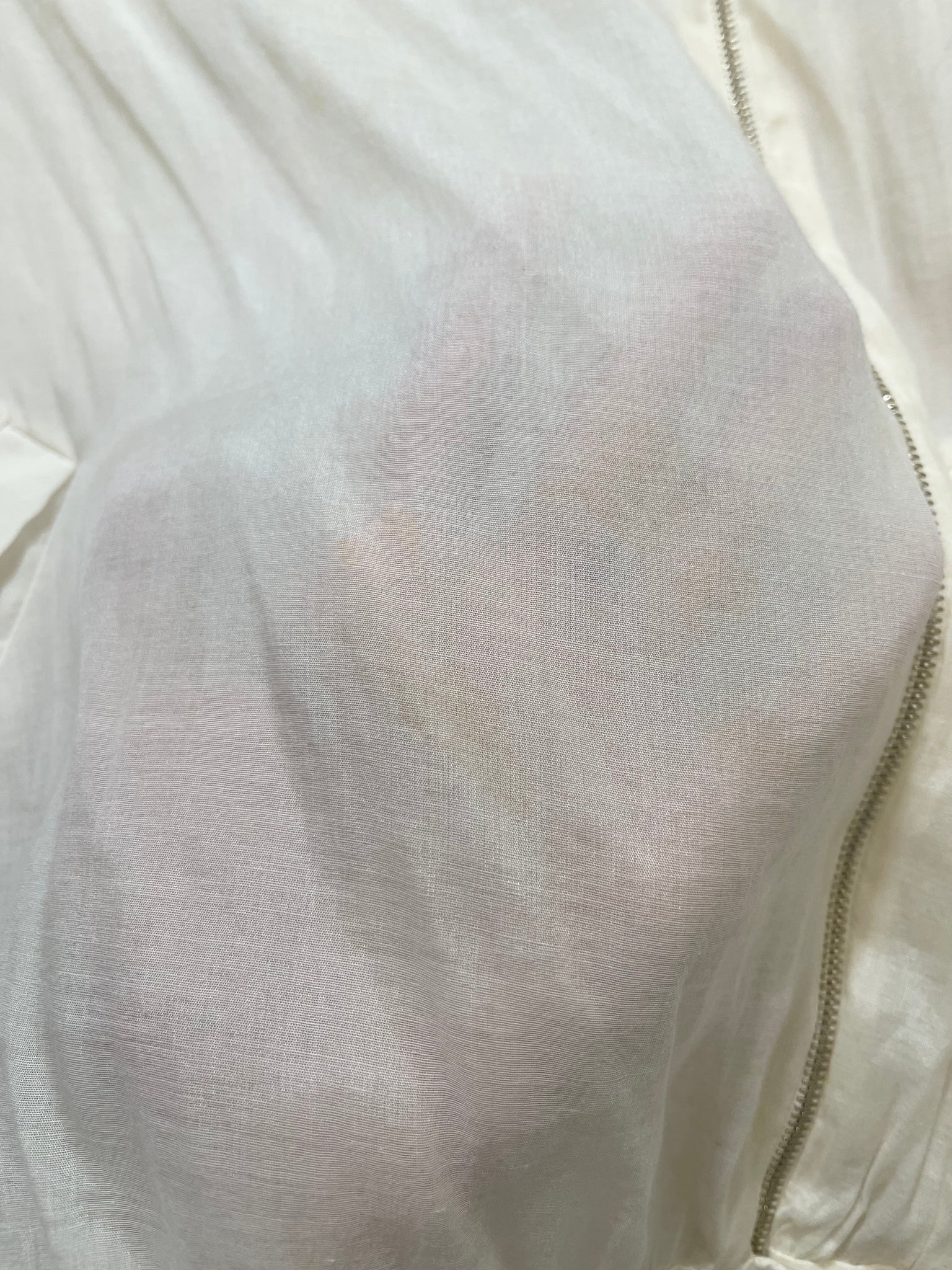 Stella McCartney cream top with billowy sleeves. Zips up the front and snaps at the waist. Fits like a small/ medium.